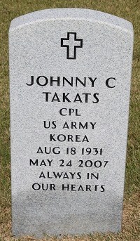 Military Marker JOHNNY C TAKATS CPL US ARMY KOREA AUG 18 1931 MAY 24 2007 ALWAYS IN OUR HEARTS